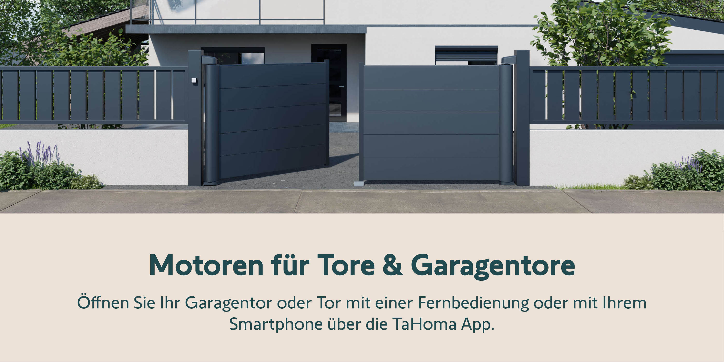 Öffnen Sie Ihr Garagen- oder Hoftor mit einer Fernbedienung oder mit Ihrem Smartphone über die TaHoma App.