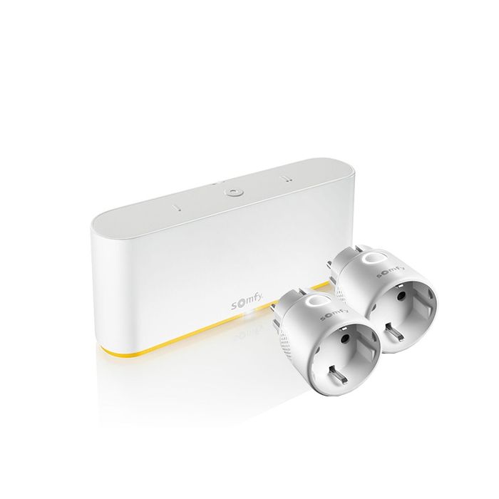 Das Paket besteht aus der Smart Home-Zentrale Tahoma Switch, der Somfy Smart Home Steuerung der 3. Generation sowie zwei Funk-Zwischensteckern io in modernem Design.