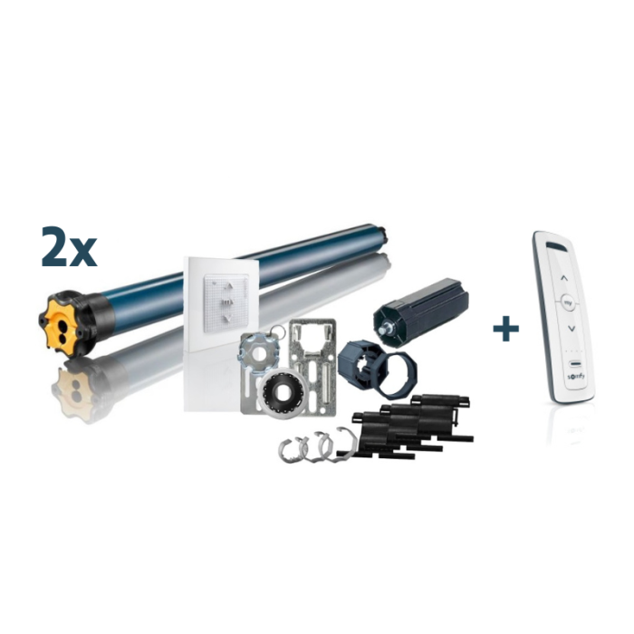 Kein mühsames Kurbeln mehr – mit dem Somfy Renovierungskit machen Sie Ihren Rollladen im Handumdrehen elektrisch. Das Set enthält zwei Somfy Rollladenmotoren, eine Fernbedienung zur komfortablen Steuerung und das nötige Zubehör für den unkomplizierten und einfachen Einbau.