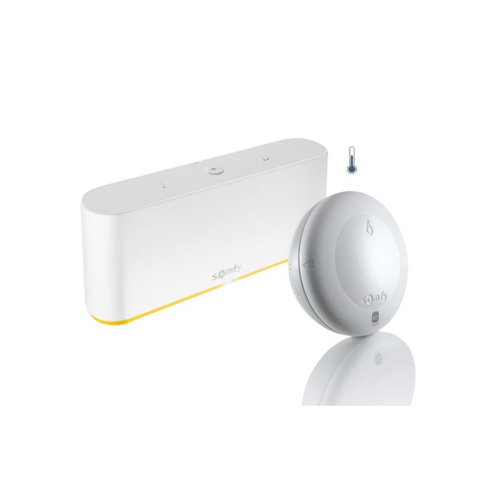 Das Somfy TaHoma Kit Temperatur, bestehend aus der Smart Home-Steuerung TaHoma und dem Somfy Temperatursensor io, ermöglicht Ihnen eine optimale temperaturabhändige Bedienung Ihrer Produkte.